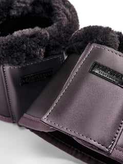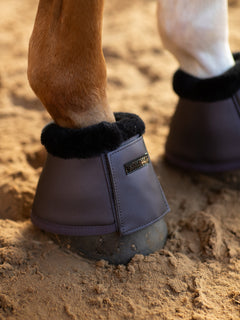 The bell boots are about 6 mm thick with neoprene lining on the inside that effectively prevents injuries to the heel. The bell boot is closed with a wide velcro closure decorated with a black Equestrian Stockholm's logo.