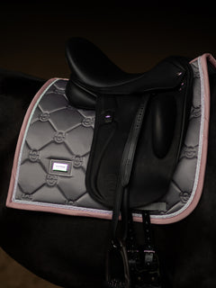 Elegant schabrak i grå med rosa och silver detaljer. Dekorerat med Equestrian Stockholm-emblem i silver. Materialet är behandlat med High IQ cool komfort vilket ger schabraket snabbtorkande och fukttransporterande förmågor. Detta hjälper din häst att hålla sig torr och fräsch längre. Matcha med andra produkter från Dusty Pink kollektionen för en snygg look från topp till tå.